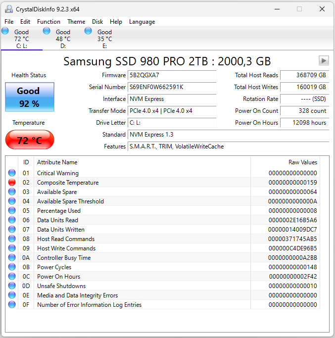 Программа, которая лучше всего понимает самодиагностику всех дисков, это CrystalDiskInfo.