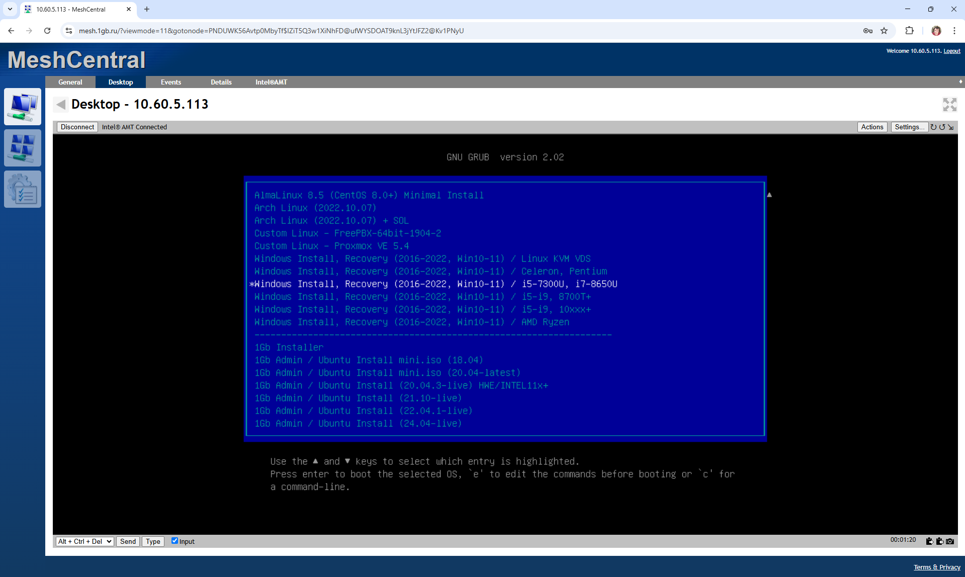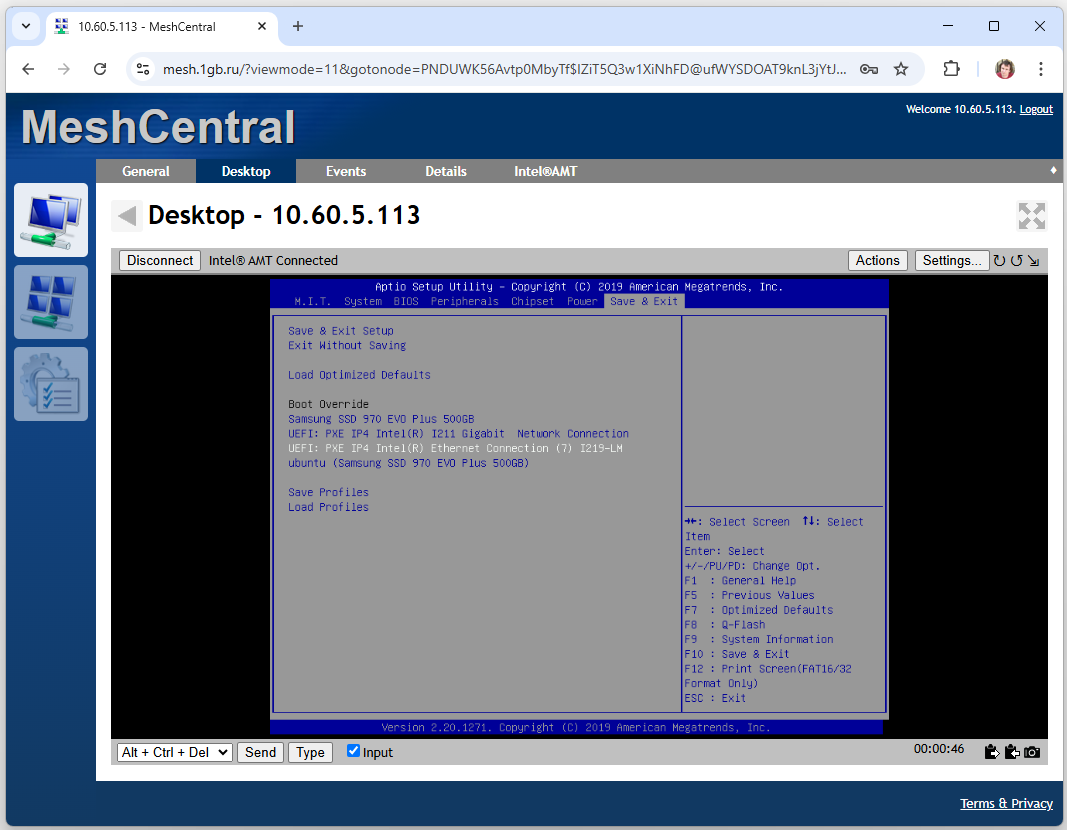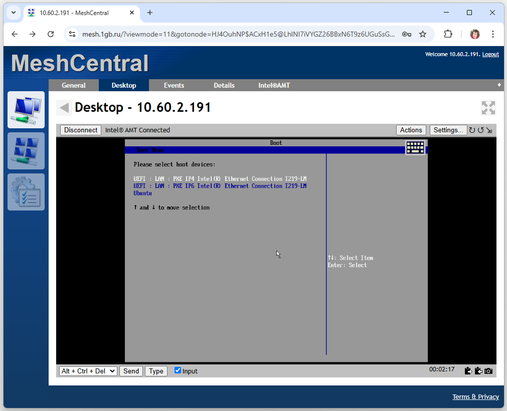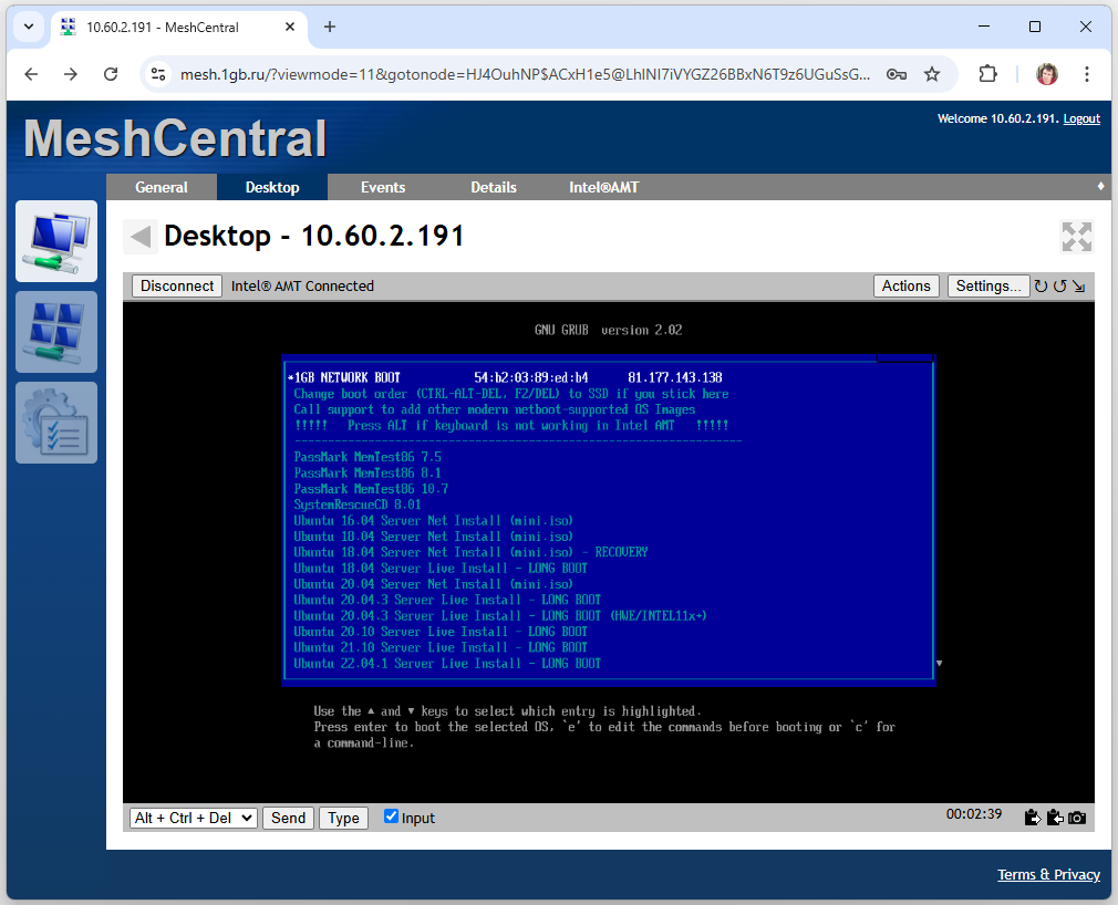 Вариант 2 - через Mesh Commander(смотрите статью про AMT / IPMI для его настройки)