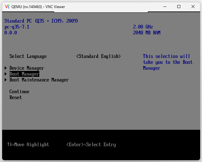 Сразу скажем, что там не надо ничего менять. Изменения не будут сохранены. Загрузка с сетиВ нашем сетевом загрузчике представлены все популярные ОС, все актуальные версии Windows, Linux, и некоторые другие ОС. Советуем начать с него. Загрузка с сети не будет работать в том случае, если у вас выбран VDS сервер без поддержки UEFO (на основе BIOS). Это могут быть старые шаблоны или BIOS шаблон несовместимых с UEFI ОС. Тогда смотрите следующий раздел про загрузку с ISO. По инструкции выше перезагрузите сервер и зайдите в BIOS. Выберите пункт Boot Manager: