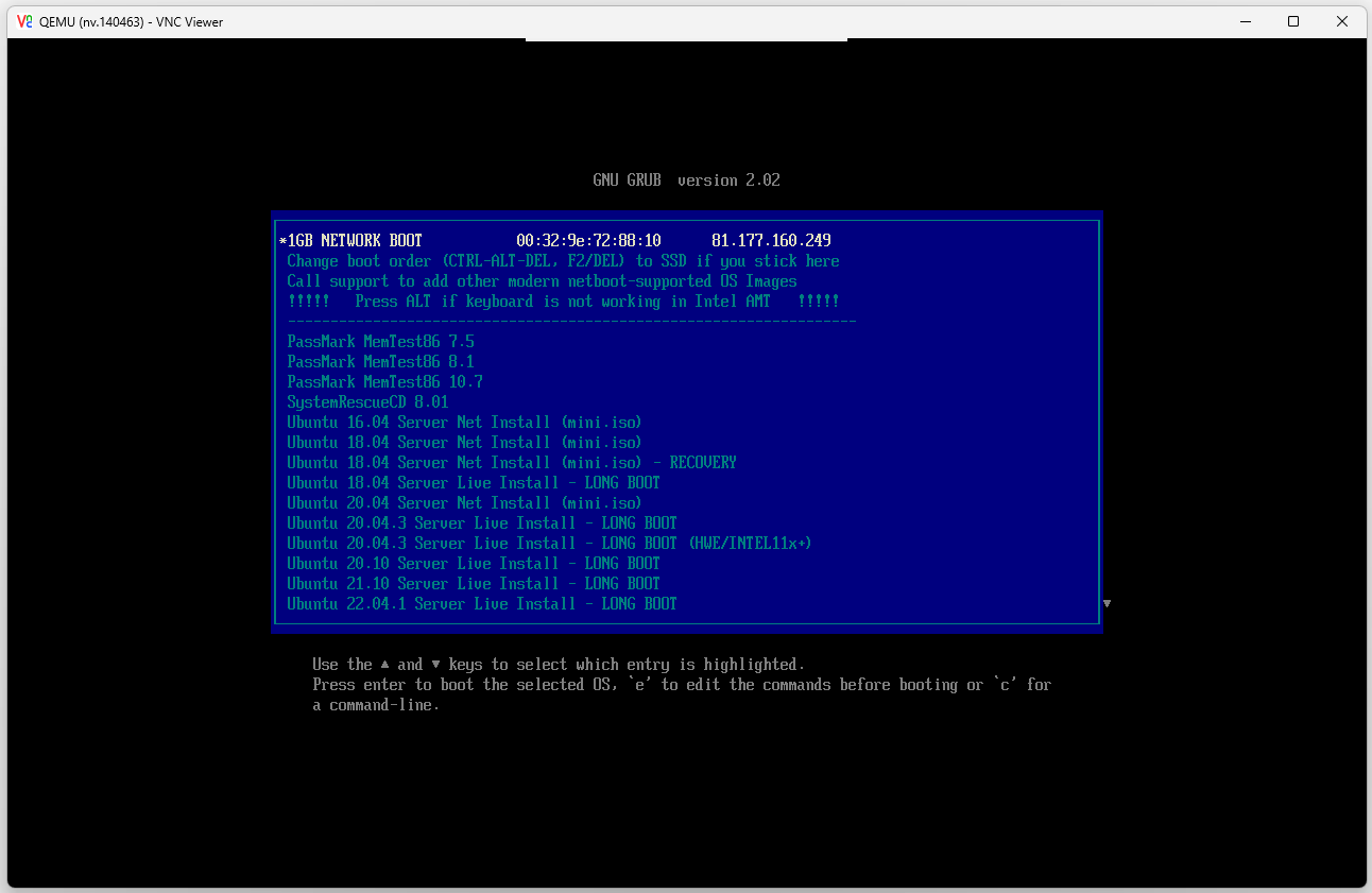 На вашем сервере загрузится вот такая штука - это наш сетевой загрузчик: